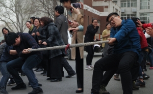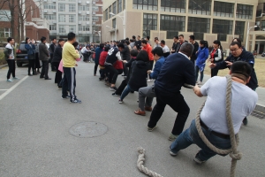 为促进教工之间的交流沟通,增进教工之间的友谊,锻炼教工的体魄,更好地发扬教工之间团结协作、奋发向上的精神,院工会于3月28日下午,在信电楼前举行了我院一直沿袭的一项传统运动——教工拔河比赛。