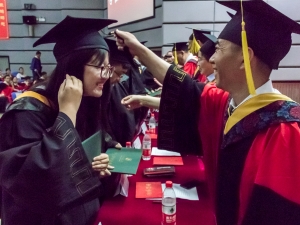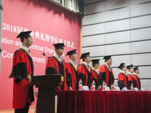 最后,刘尚民书记宣布信息与电气工程学院2018届毕业生毕业典礼暨学位授予仪式圆满结束,全体起立,奏唱校歌。会场歌声嘹亮,唱完整首歌曲后,不少同学的眼眶已经泛红,与即将告别的母校难舍难分。
