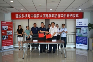 舒骋CEO表示,与中国农大的合作将进一步提高随锐科技在智能机器人方面的产品战略,通过将学校里的科研产品原型快速产品化,商业化,将学校里的产品原型快速转化为经济效益,达成双方共赢。为了与中国农大联合培养拔尖创新人才,随锐科技将支持学院建立“人工智能联合培养基地”、“农业机器人综合实验室”,支持学院国际拔尖创新人才培养,以适应国家和社会需求。舒骋称,随锐科技曾与清华大学、北京航空航天大学、南京邮电大学三所大学合作。目前,中国农大将是随锐科技重要的人才培养、人才输出基地,通过研究合作,把科研产品实践施行工程落地,把科研产品进行产业化、商业化,实现服务市场、服务社会、服务国家重大需求。